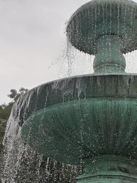 die Wasserfälle. Der Brunnen ist städtisch und ein Baudenkmal