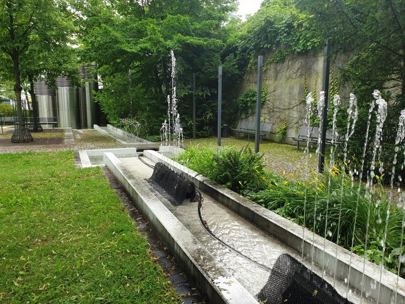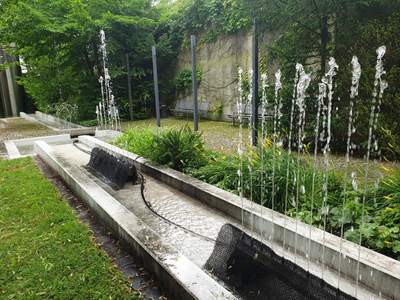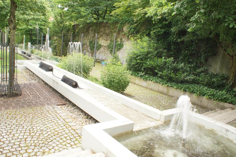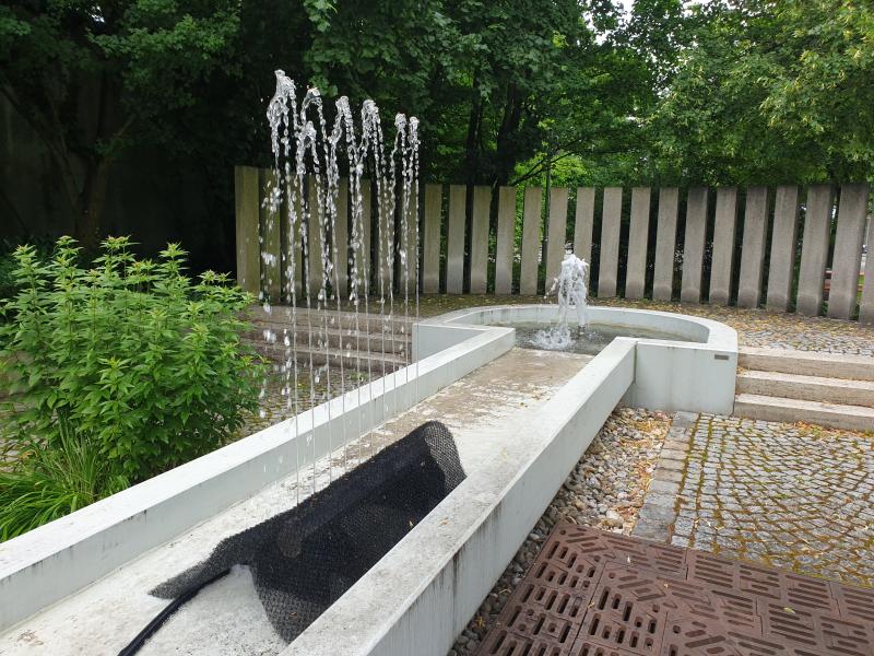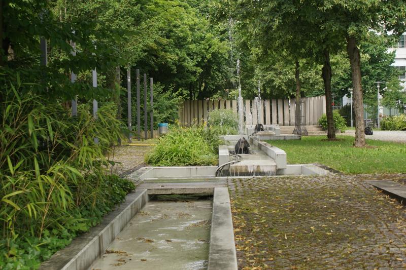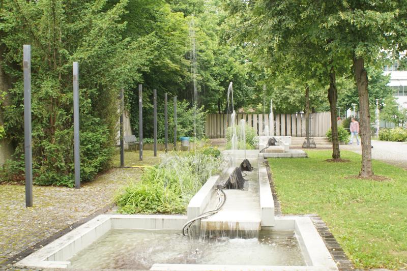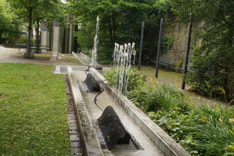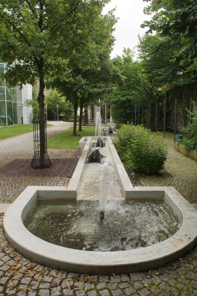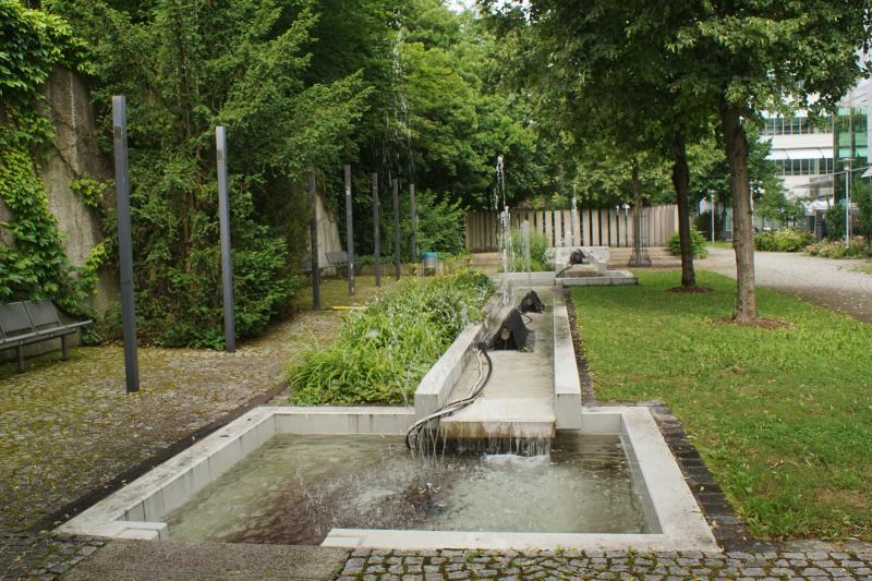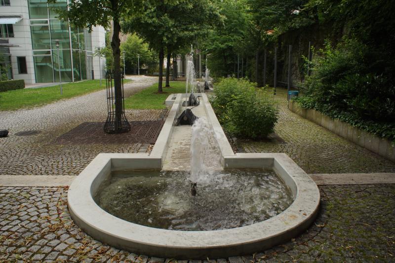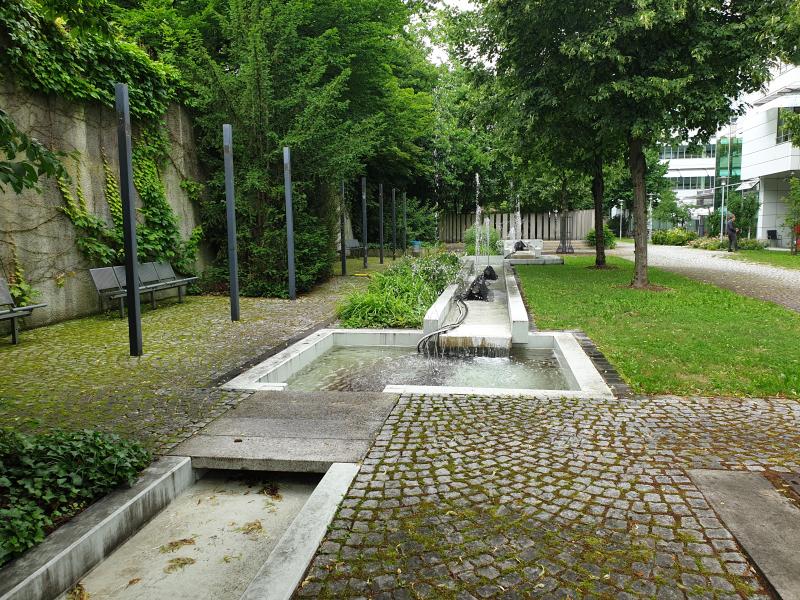 langgestreckte Brunnenanlage befindet sich im Innenhof der "WWK Versicherung"