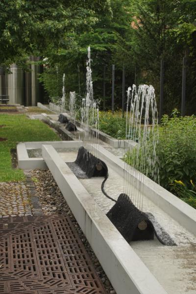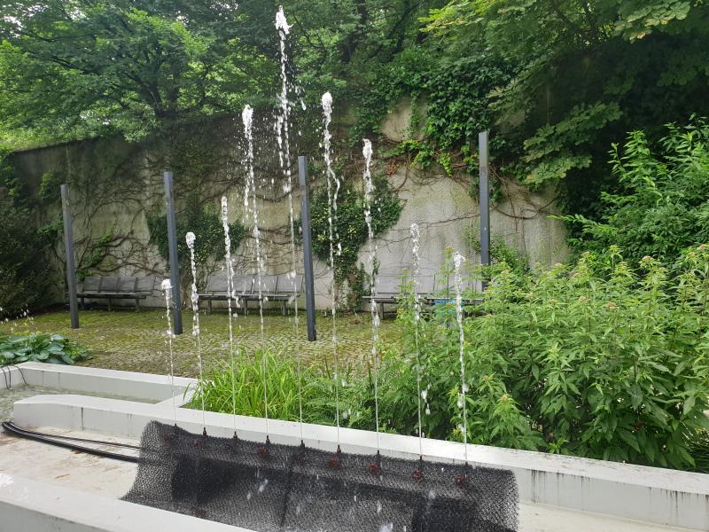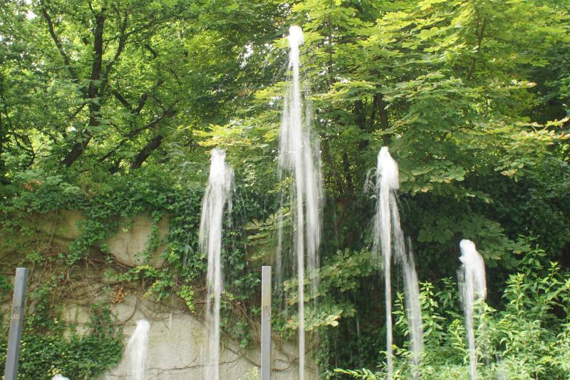 aus vier Elementen mit vier Mehrfachfontänen, die im "Laufkanal"