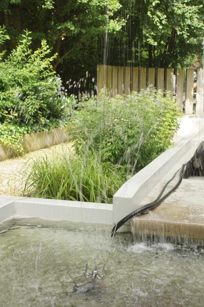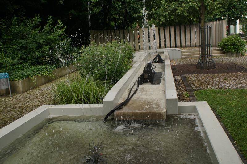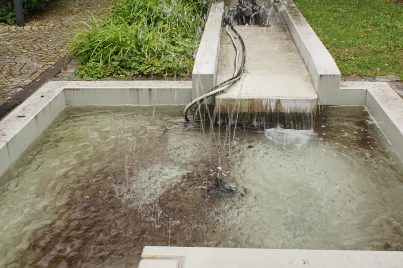 Am "Startbecken" sprudelt eine kleine Fontäne aus dem Becken.