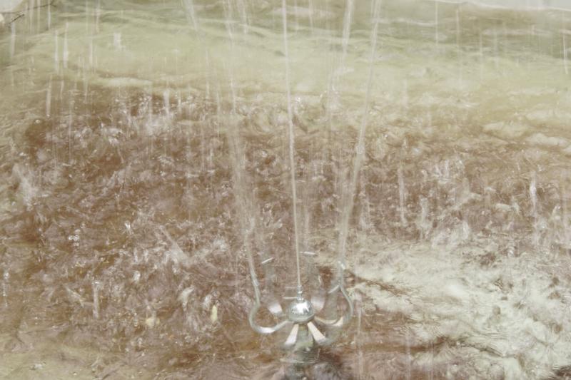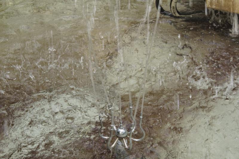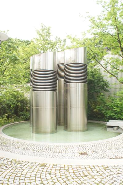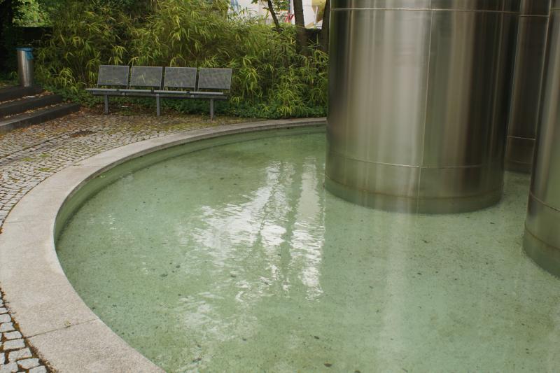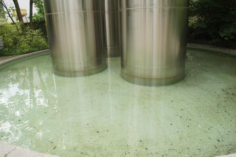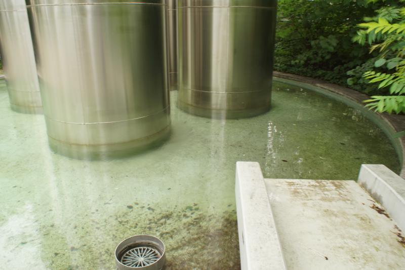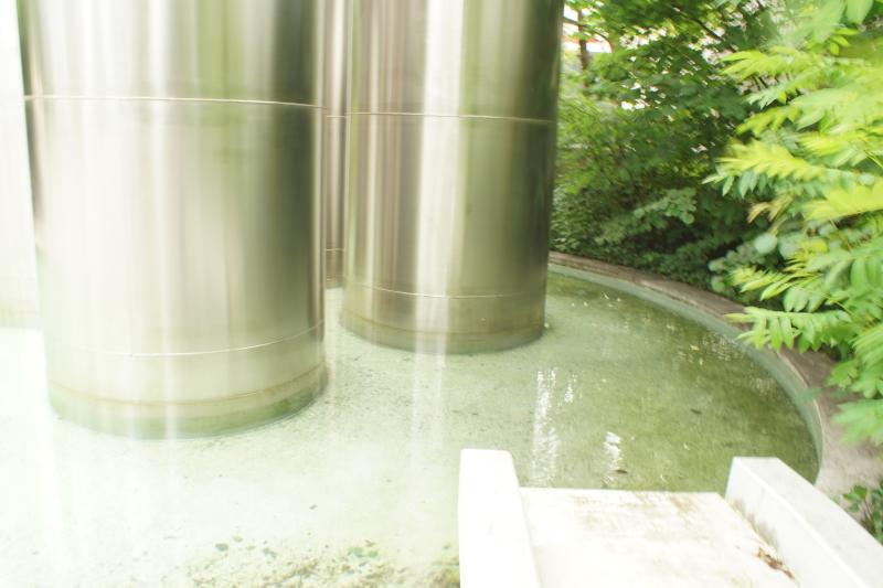 Die vier silberfarbigen Zylinder im Auslaufbecken gehören nicht zum