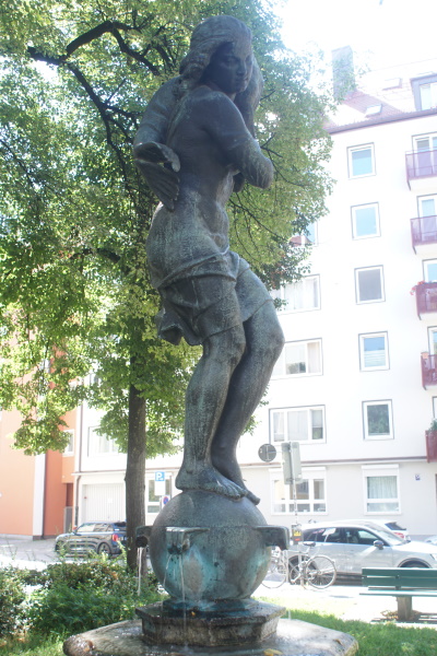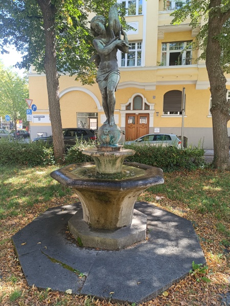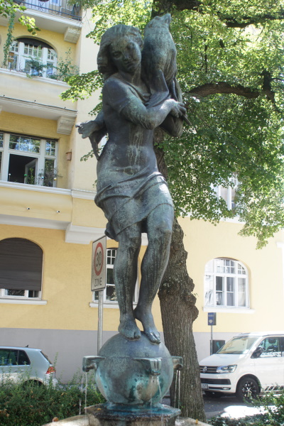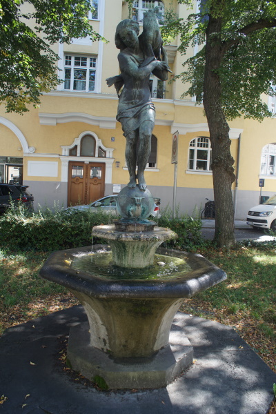 kleine Brunnen mit dem Namen "Mädchen mit Seehund" befindet