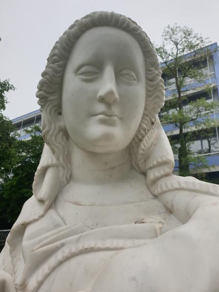 etwa doppelter Vergrößerung ausgeführte gut 2 m hohe Brunnenfigur