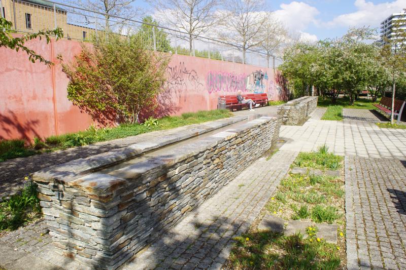Brunnenanlage befindet sich am Petuelpark im Stadtbezirk 04 - Schwabing