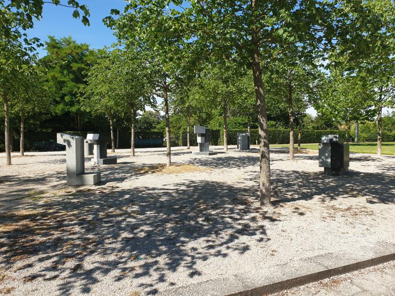 Bauten handelt es sich um sechs verschieden hohe "Rednerpulte"