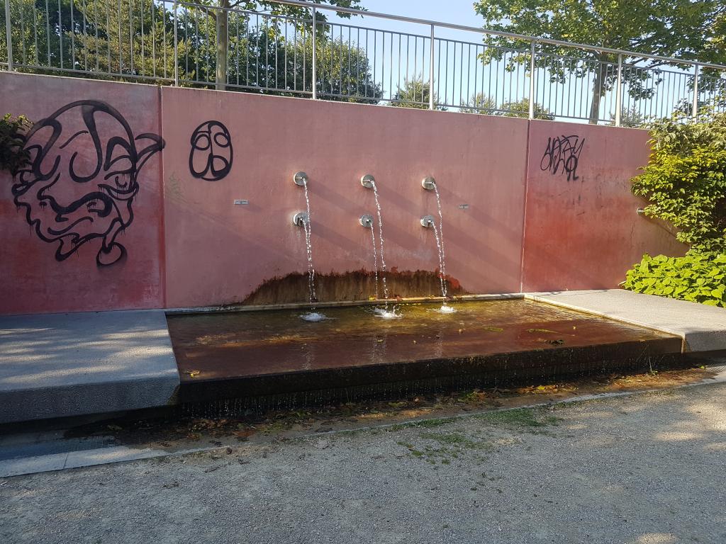 haben der Zahn der Zeit und Graffity Schmierereien der Brunnenanlage schon