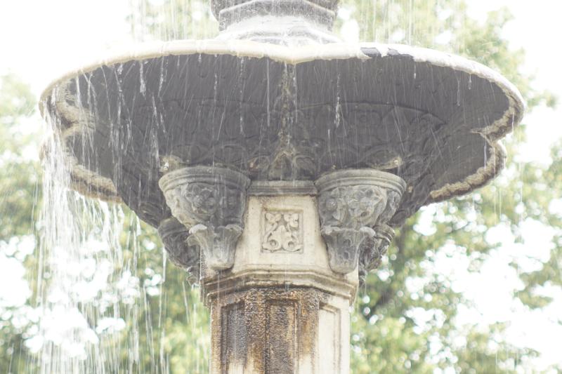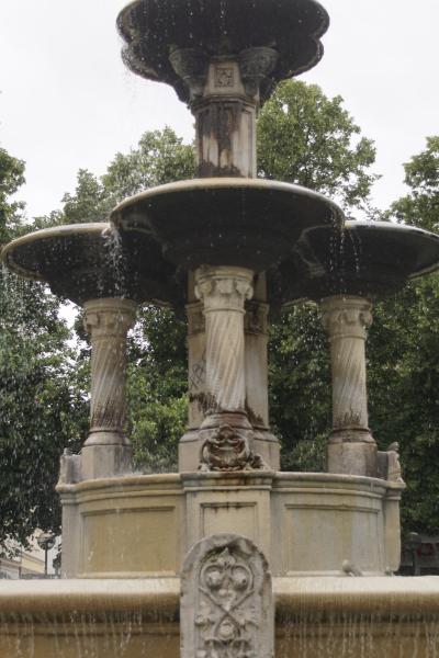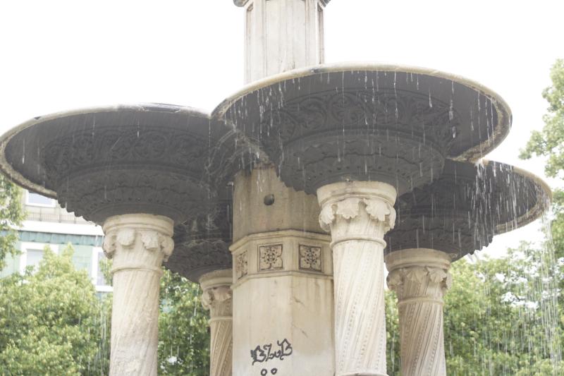Wasserstrahls steht die zweite, achteckige, dreigeteilte, mit verschiedenen