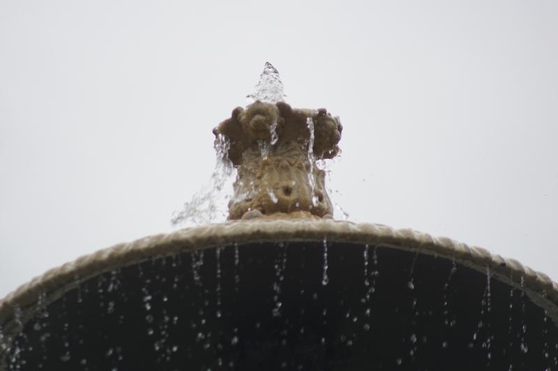 Hoch oben, aus einer Knospe gleich, sprießt das Wasser sanft etwa