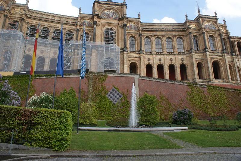 Maximilianeum wurde von 1857 - 1874 erbaut und der Brunnen 1951 von Emil