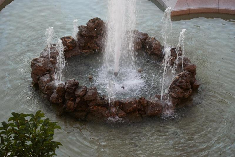 verteilte, etwa einen Meter hohe Wassersäulen. Als Krönung entsprang
