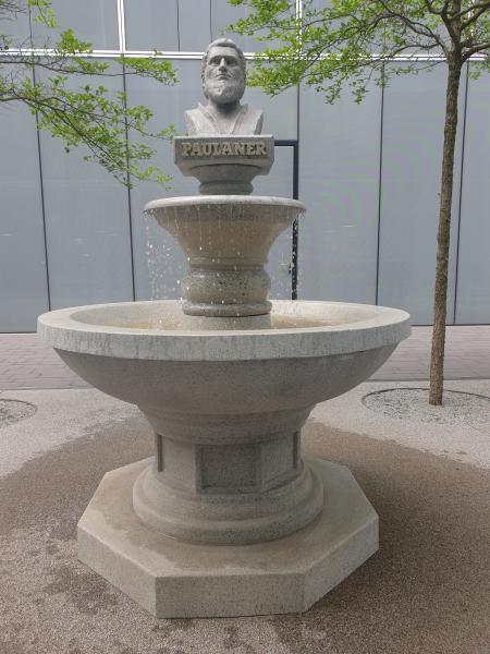 Springbrunnen befindet sich auf dem Gelände der Verwaltung der "Paulaner"