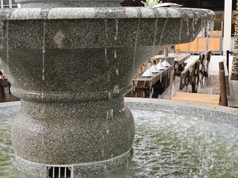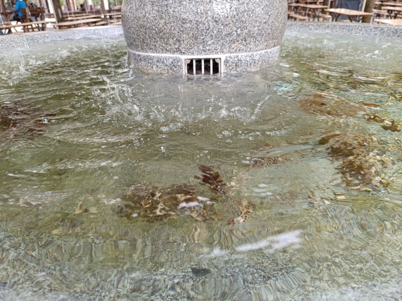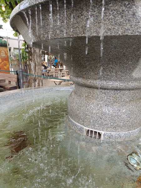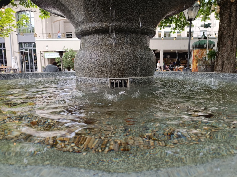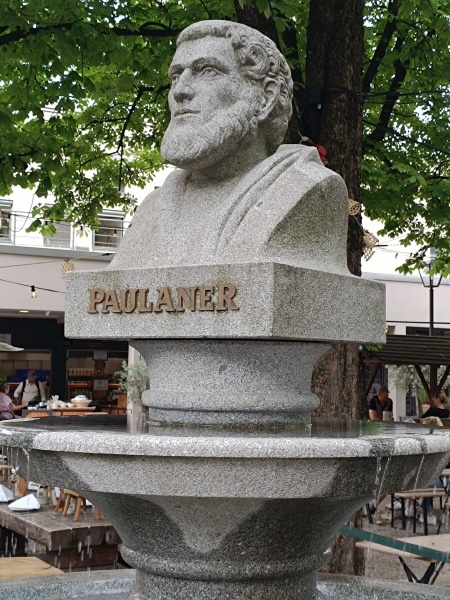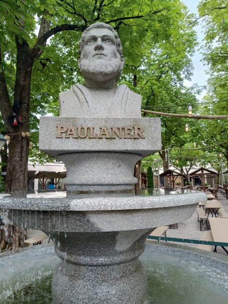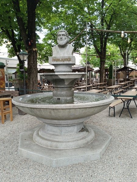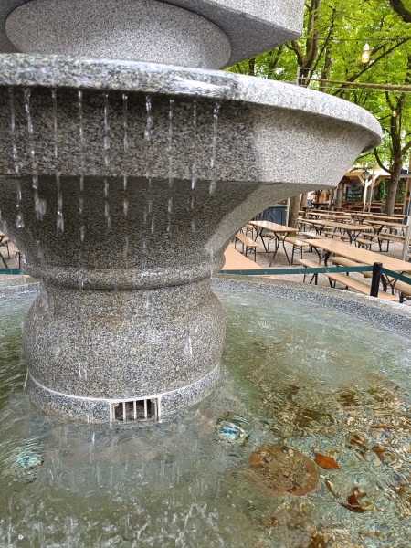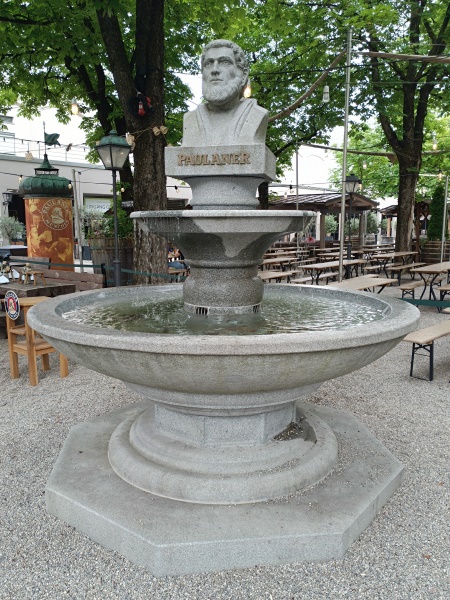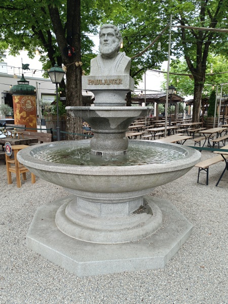Springbrunnen befindet sich im großen Biergarten des "Paulaner