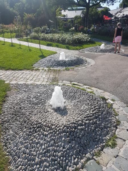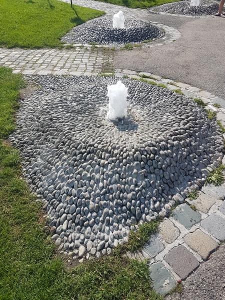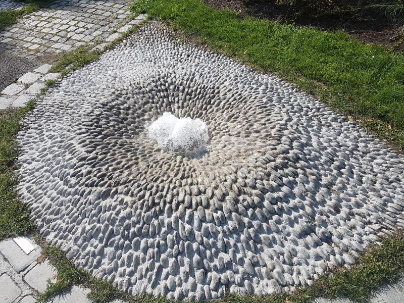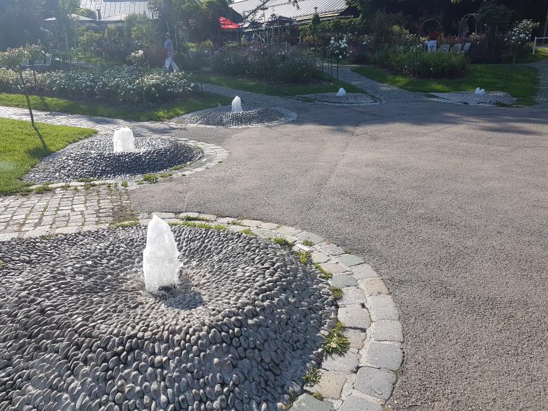 kleine Brunnenanlage, bestehend aus sechs kleinen Fontänen, befindet
