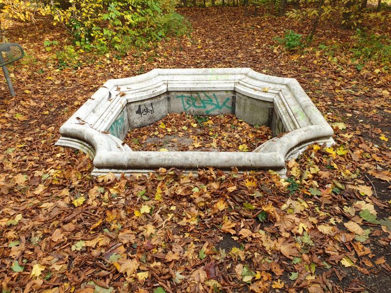Lediglich jede Menge Laub findet sich im leeren Becken. Mir ist nicht