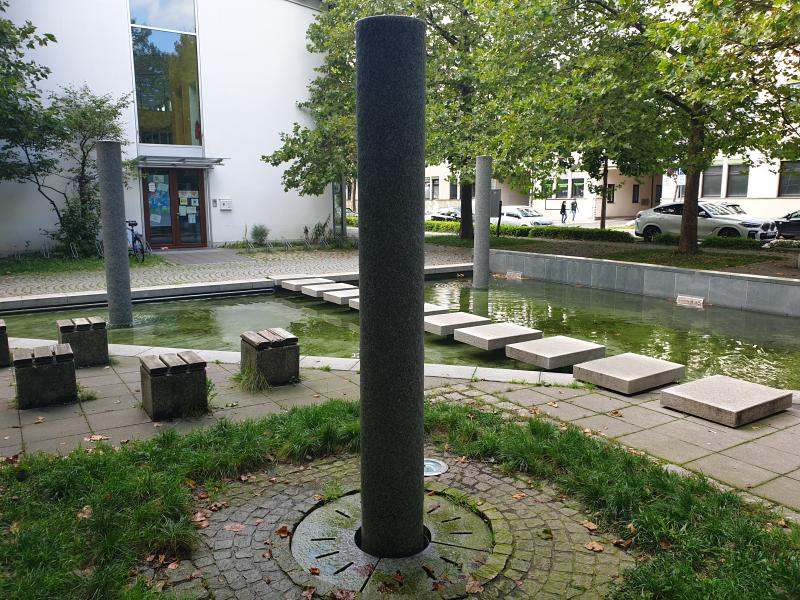 der Brunnen von Stefan Kalckhoff. Aus insgesamt sechs runden Steinstelen,