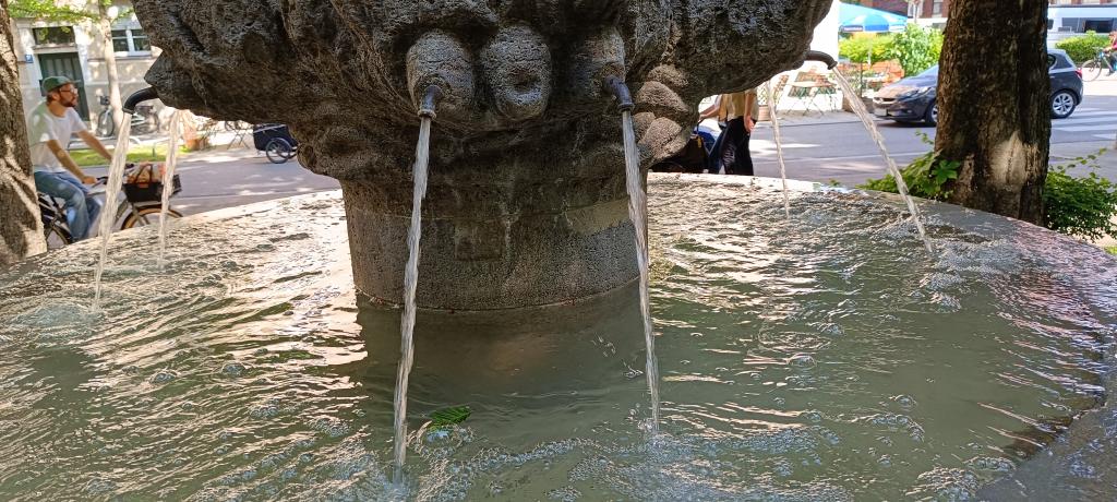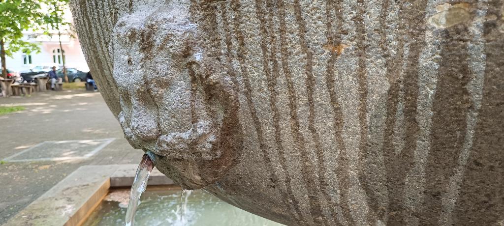 halten. Aus den Fischmäulern sprudelt das Wasser in eine tieferliegende
