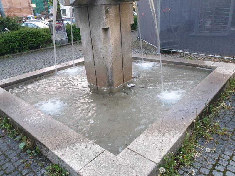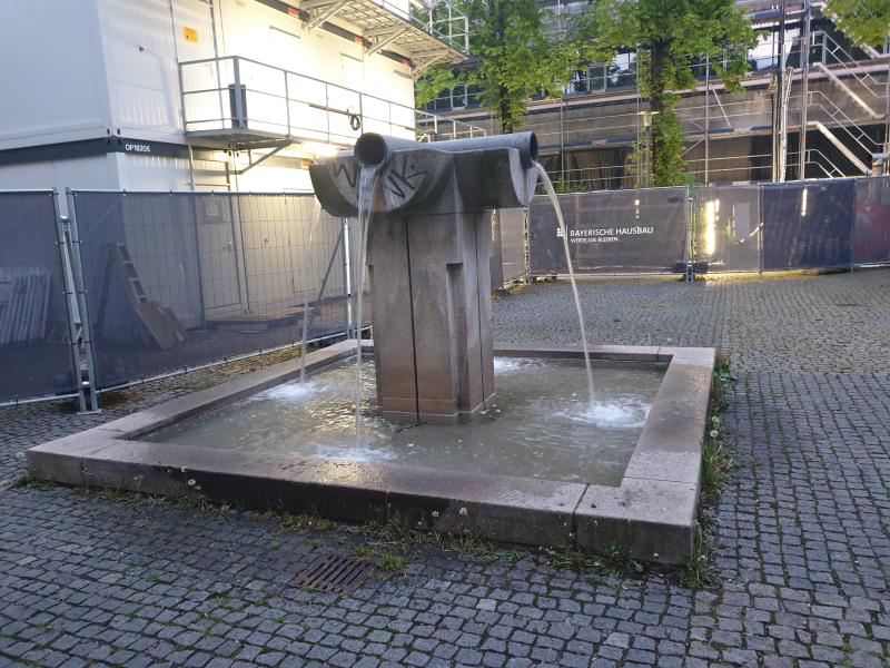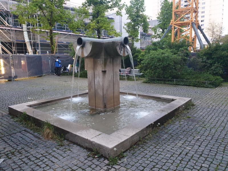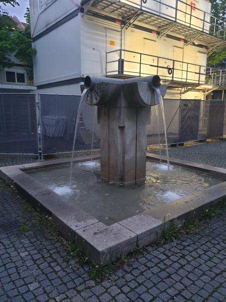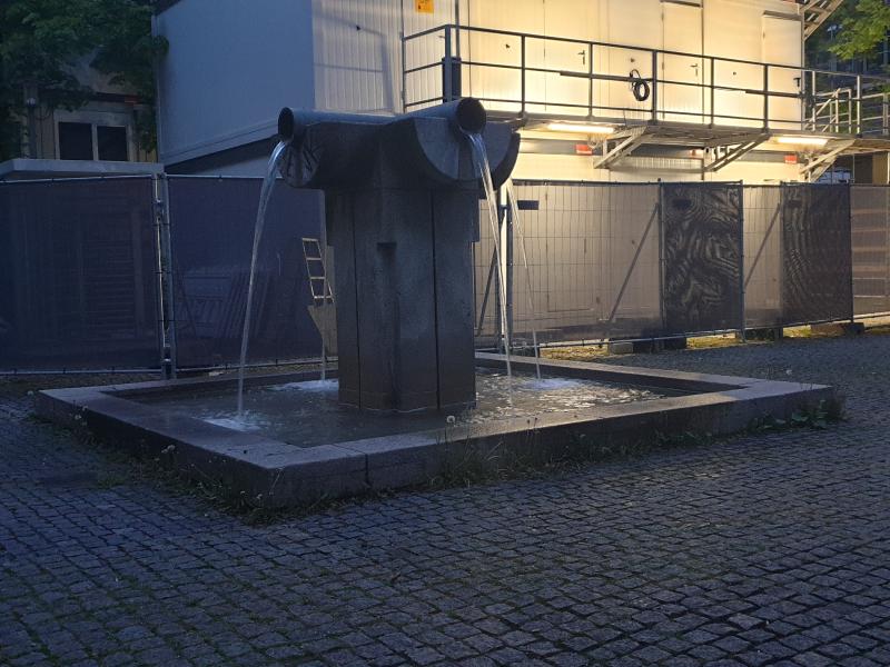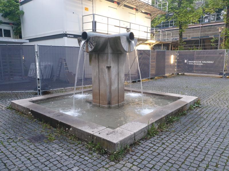 "Röhrenbrunnen" mit Wasserauslauf aus vier metallenen Röhren