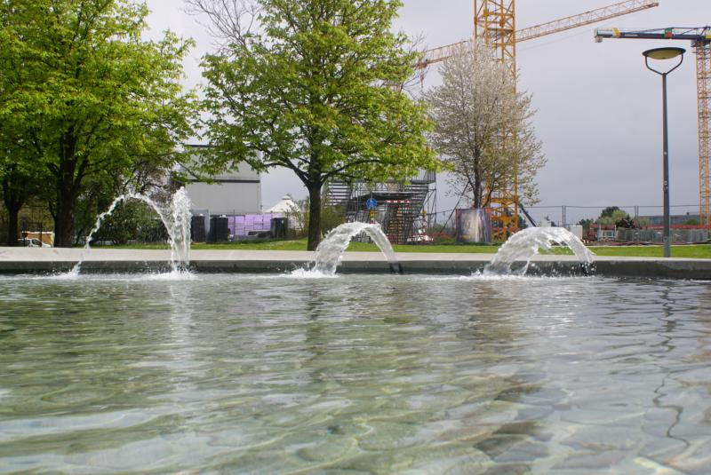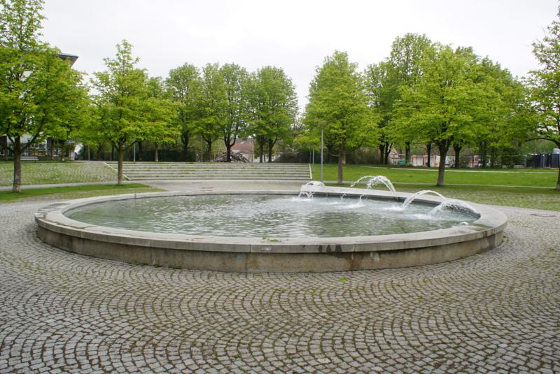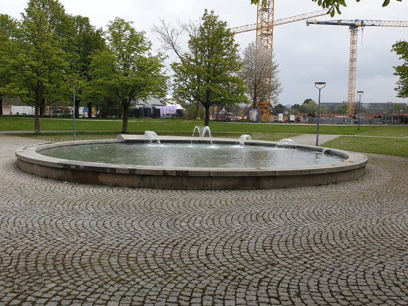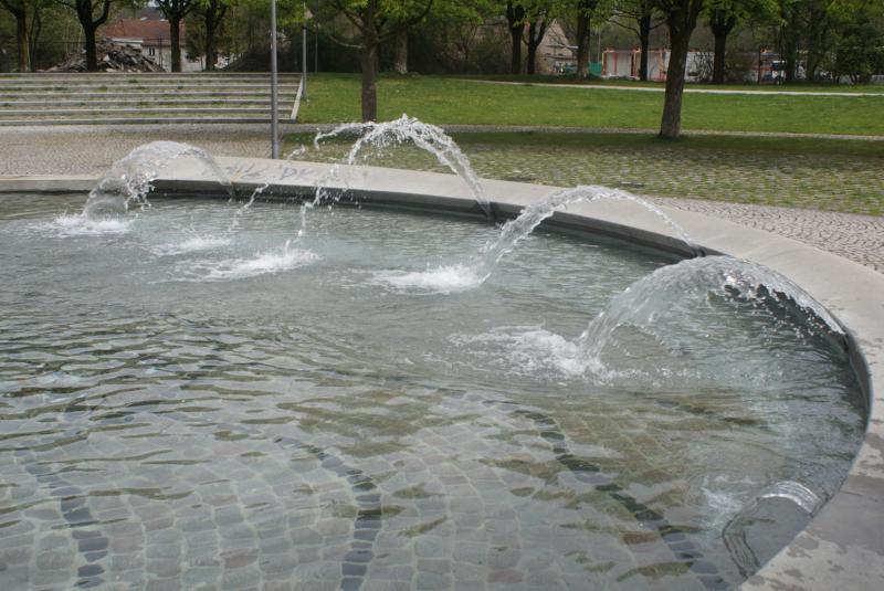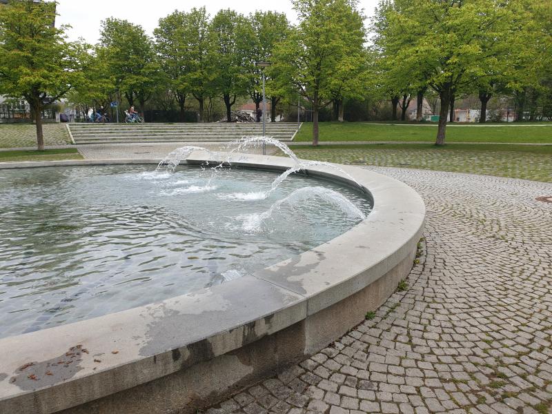 Brunnenanlage befindet sich am Rosa Luxemburg Platz im Stadtbezirk 09