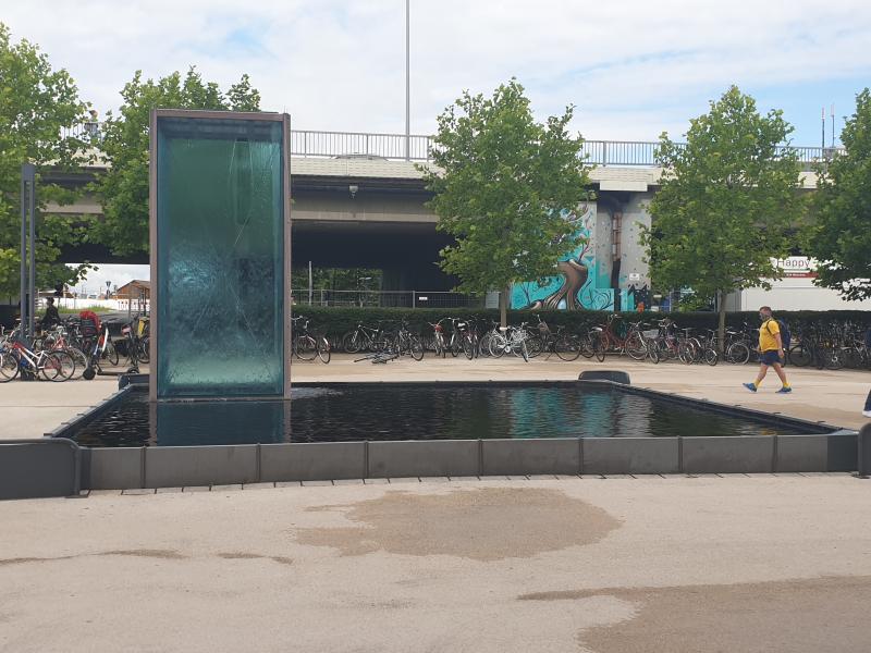 Brunnenanlage befindet sich nahe der Donnersberger Brücke vor einem