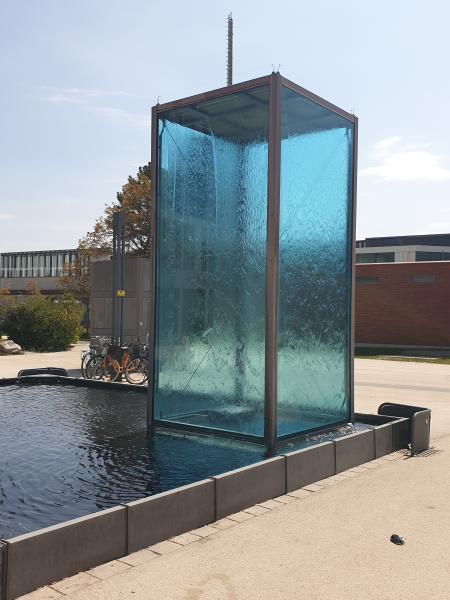 genannt. Das Wasser fließt an der Außenseite der Glasflächen