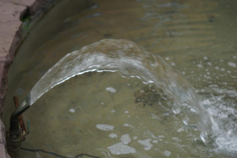 gegossen. Das Betonbecken umgibt eine Einfassung aus Wesersandstein. |