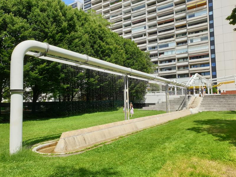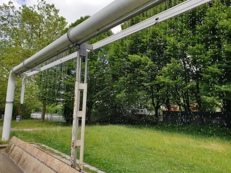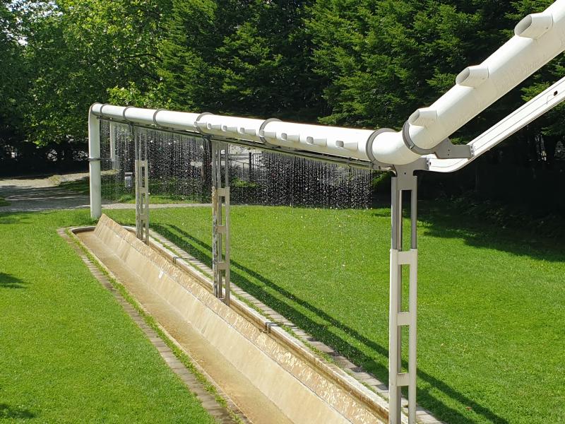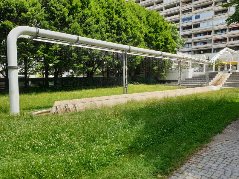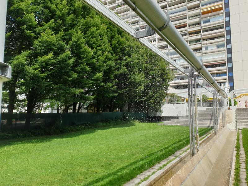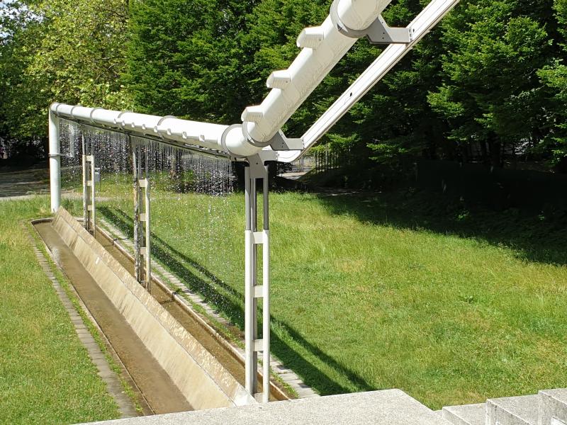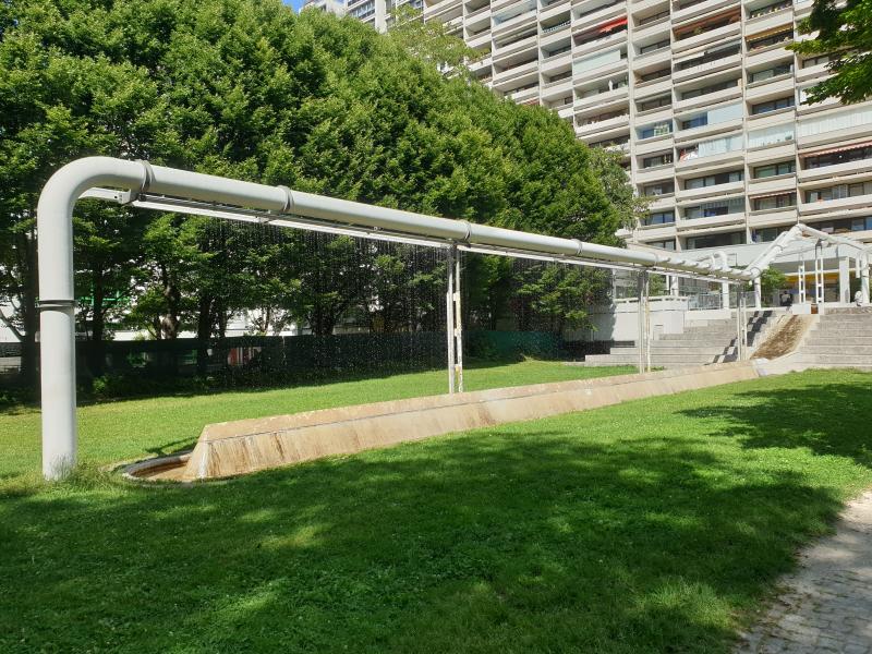 "Regenwand" ist eine von vielen Brunnenanlagen im olympischen
