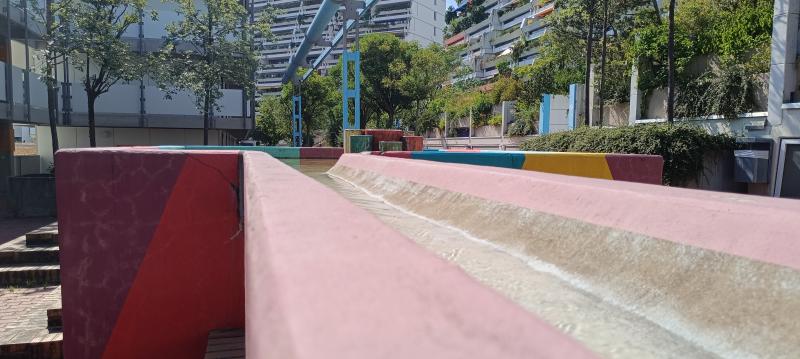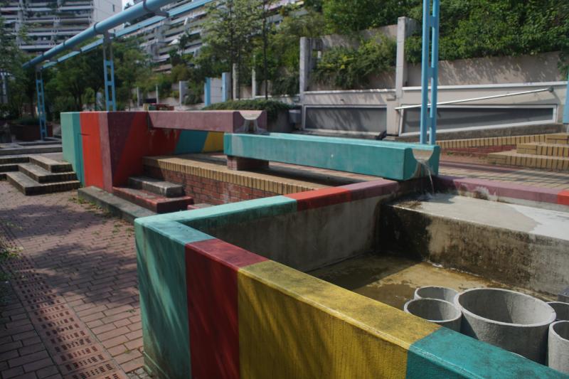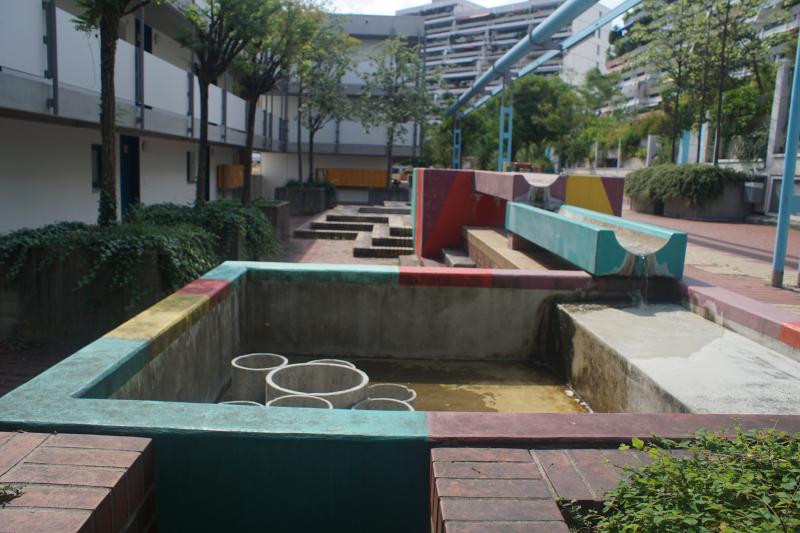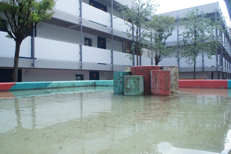 ist eine von vielen Brunnenanlagen im olympischen Dorf im Stadtbezirk