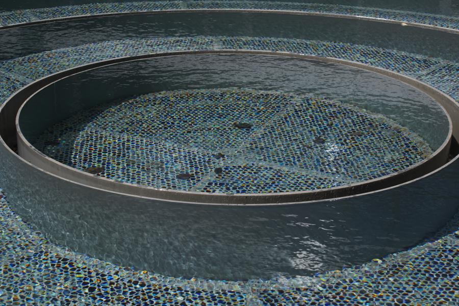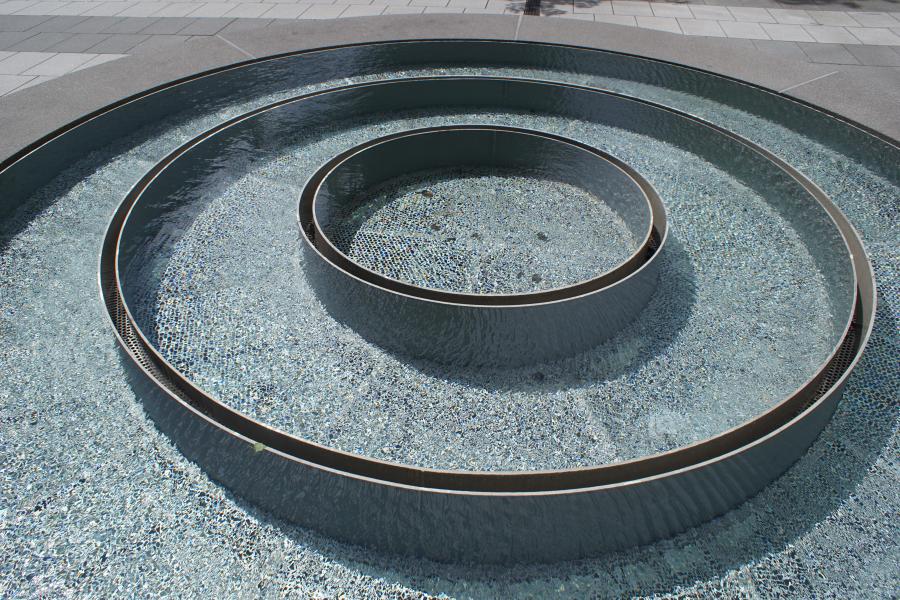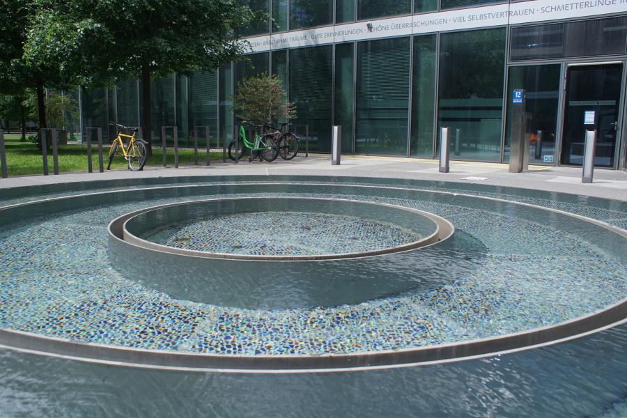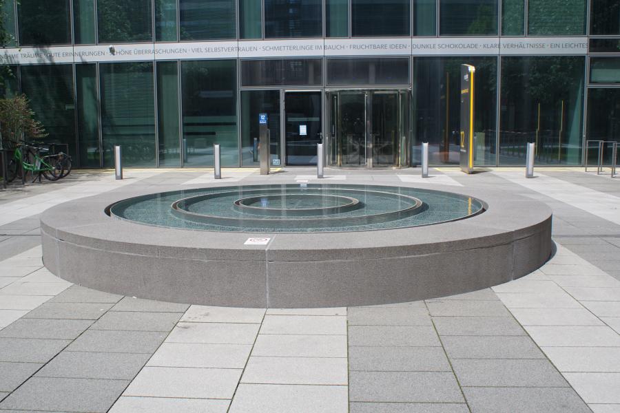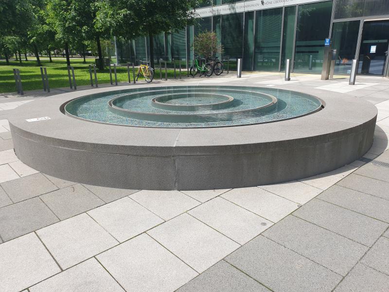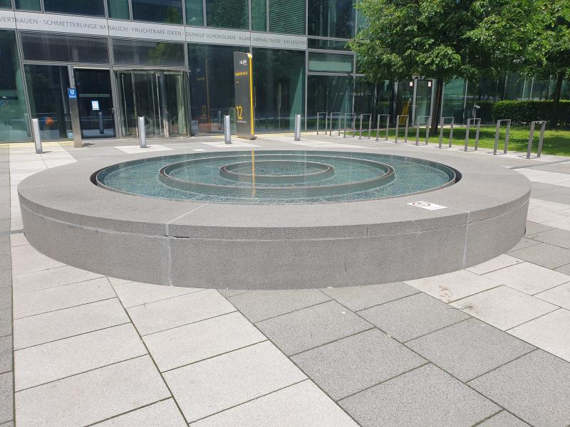 Diese Brunnenanlage in Form eines runden Wasserbeckens, in dem sehr wenig