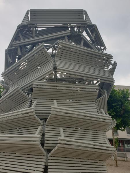 gestapelten Sitzbänken am neu gestalteten Bauhausplatz ist seit 14.