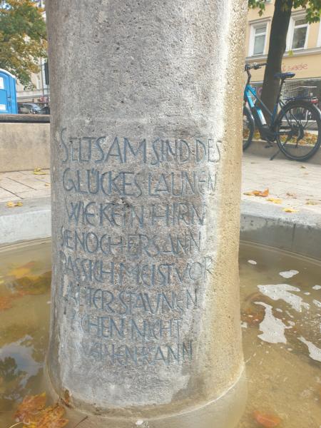 auf der Säule: "Seltsam sind des / Glückes Launen / Wie