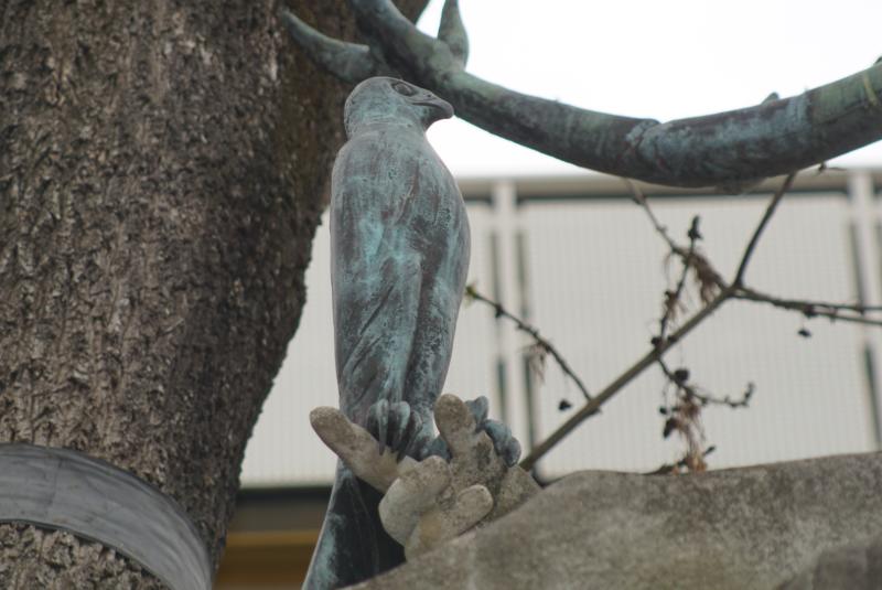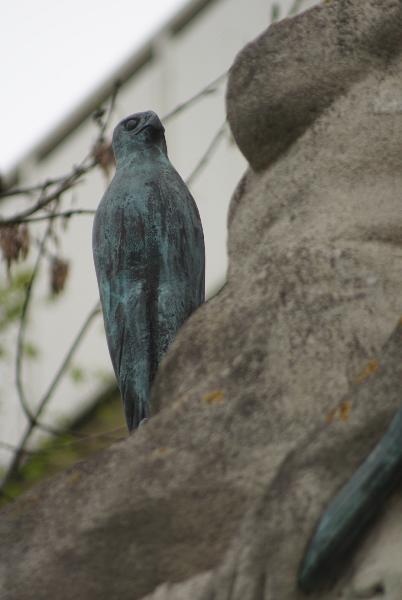 und der Falke sind Bronzeskulpturen. Er zeigt die Göttin Diana lehnend