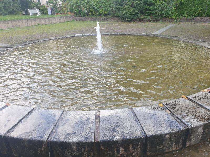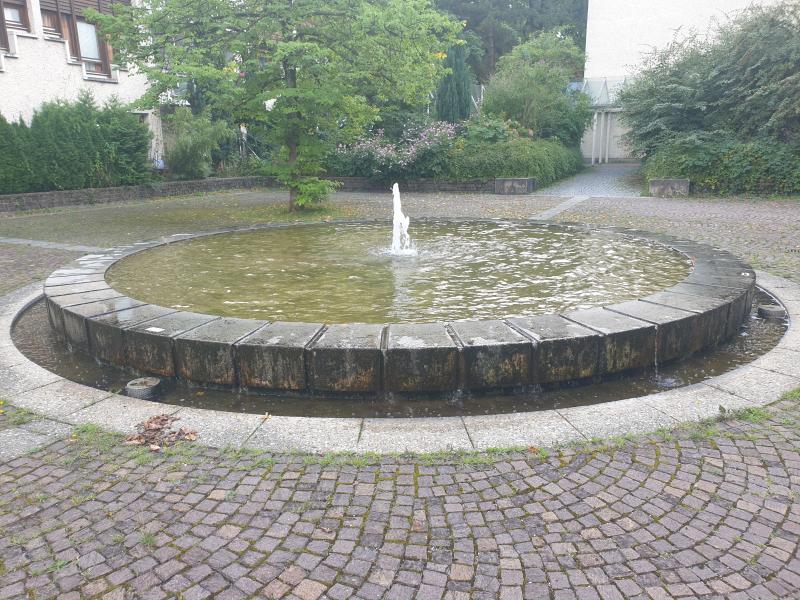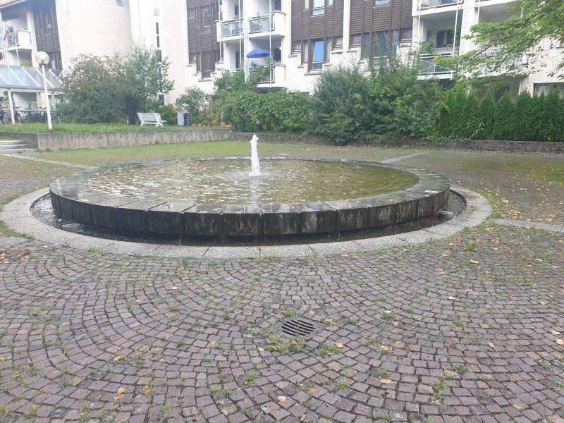 schöne Rundbrunnen befindet sich im Innenhof einer Wohnanlage in