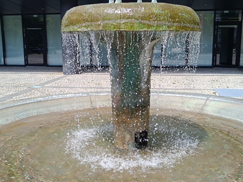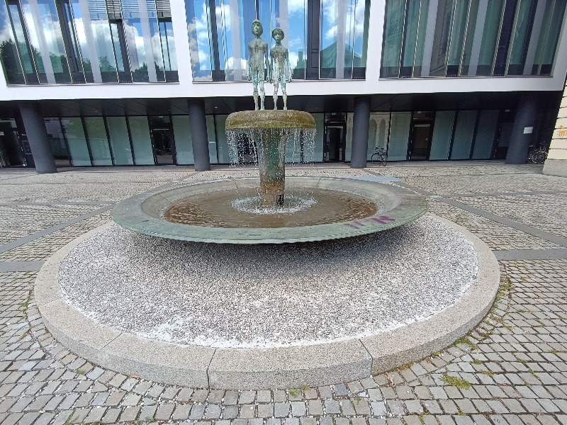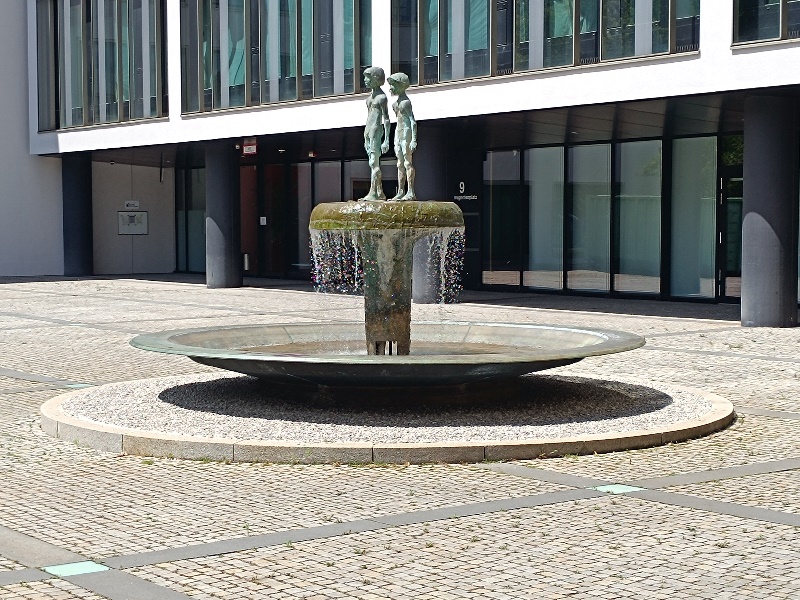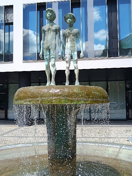 der Brunnen 1978 von Klaus Backmund. Der Bildhauer ließ sich bei