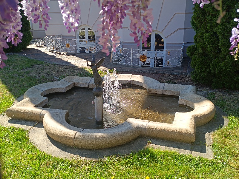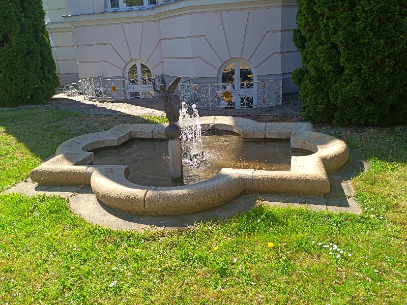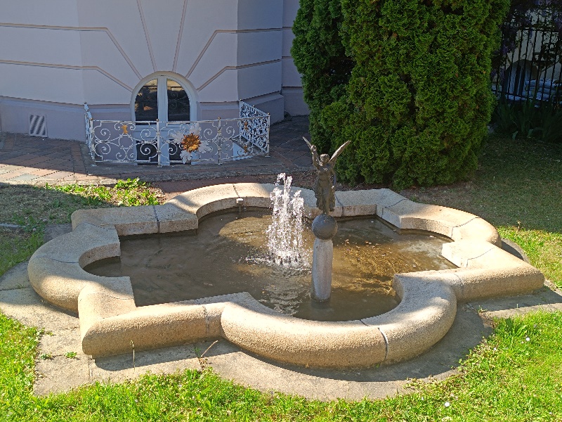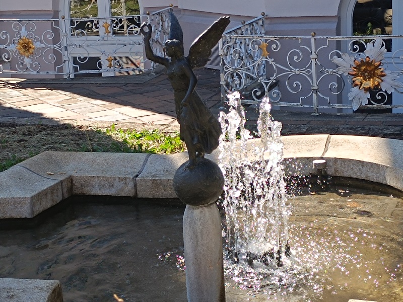 kleine Brunnen mit einer Skulptur der Siegesgöttin Nike im Stadtbezirk