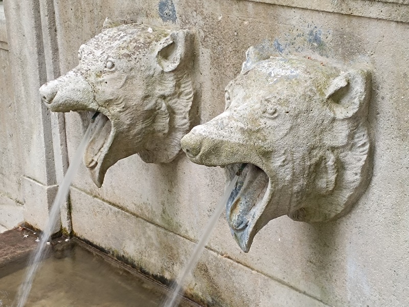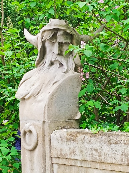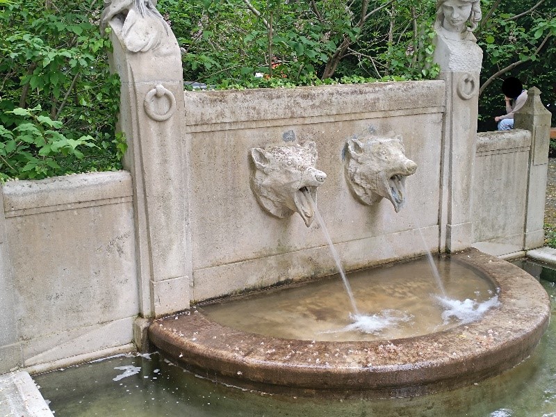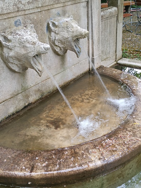 der Mitte der Anlage befinden sich zwei Tierköpfe (in meinen Augen