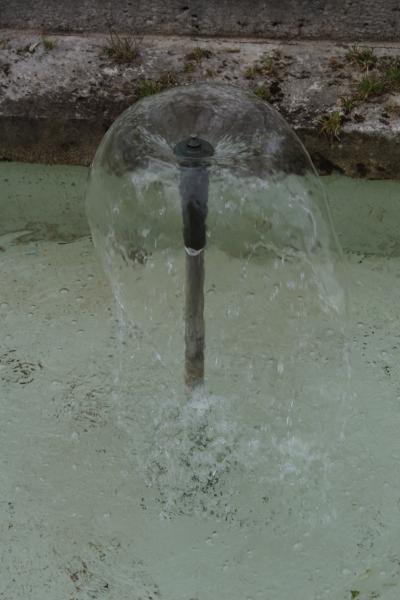 Rohr das Wasser, keine 40 cm vom Beckenboden entfernt, und formt sich