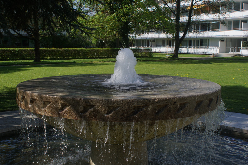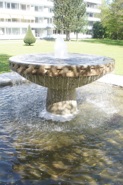 Brunnen befindet sich in der Parkanlage eines Wohnblocks in der Stolzingstraße