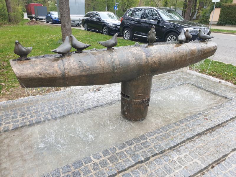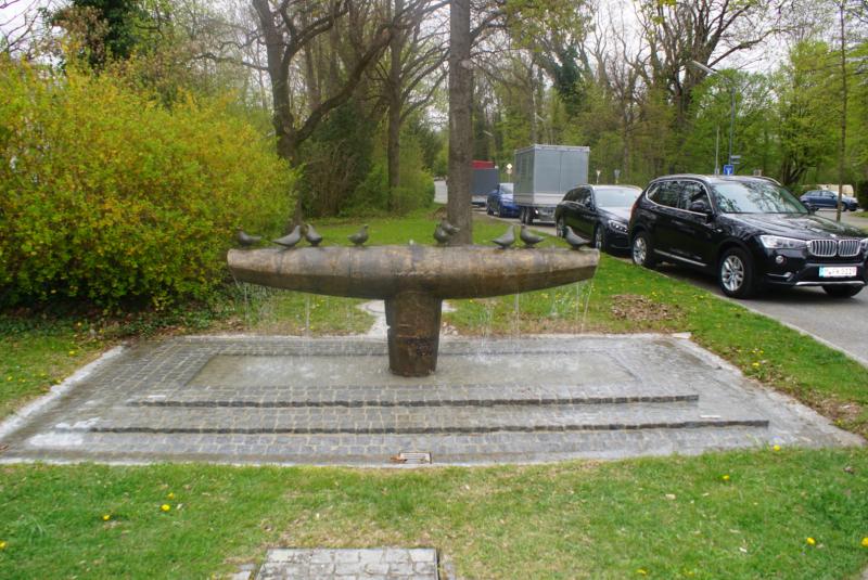 Bronzebrunnen im Bogenhausener Herzogpark, an der Ecke Mauerkircher Straße