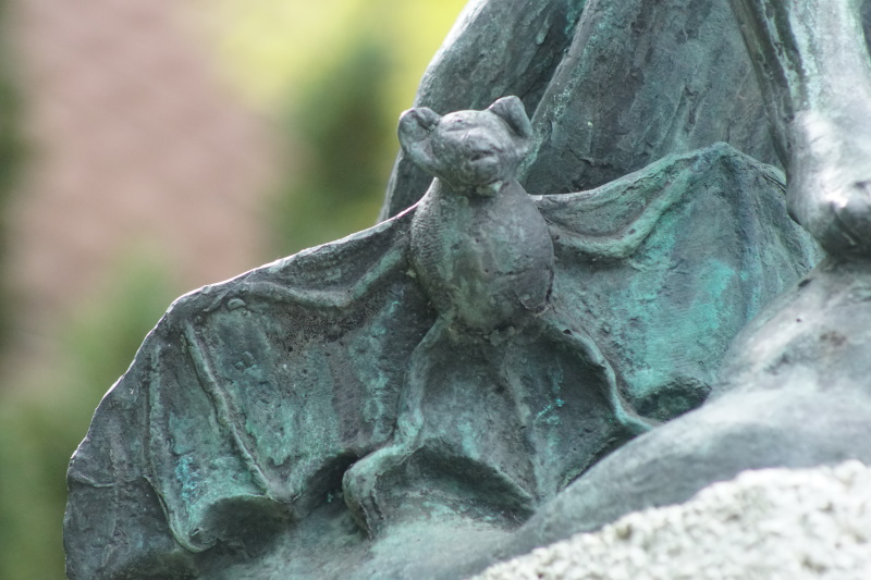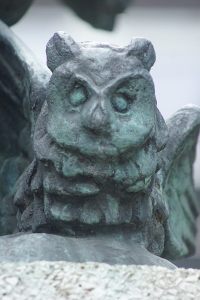 eine Drude, sitzt relativ zierlich weit oben auf ihrer vierkantigen, obeliskenartig