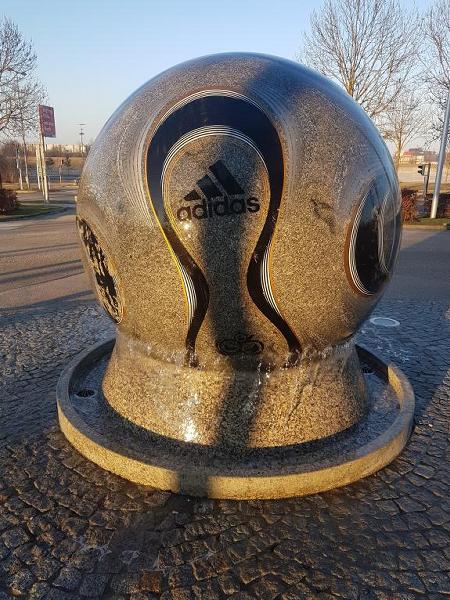 die Steinkugel im WM-Brunnen und durch die Drehung mit den oben genannten