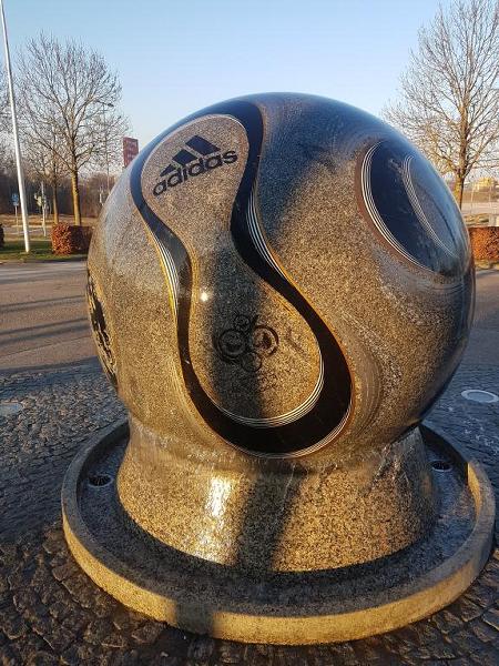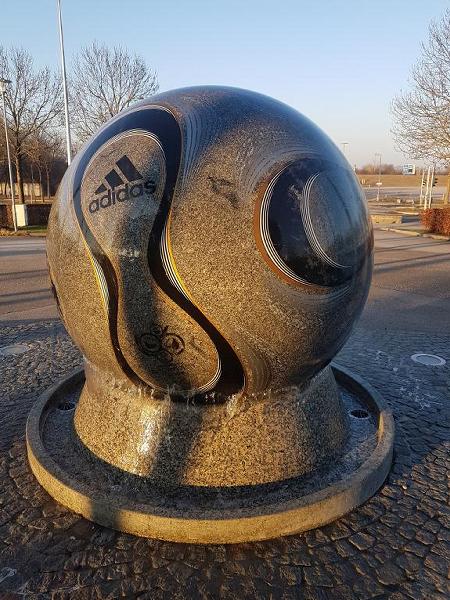 bekannt. Die Fußball - Steinkugel trägt das Muster des Original