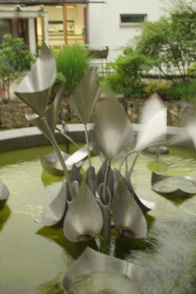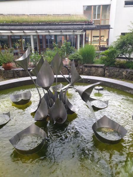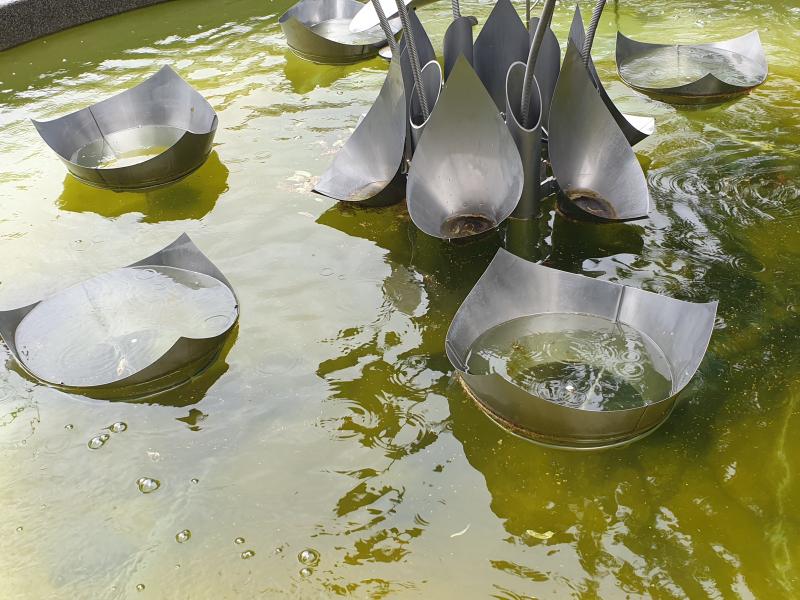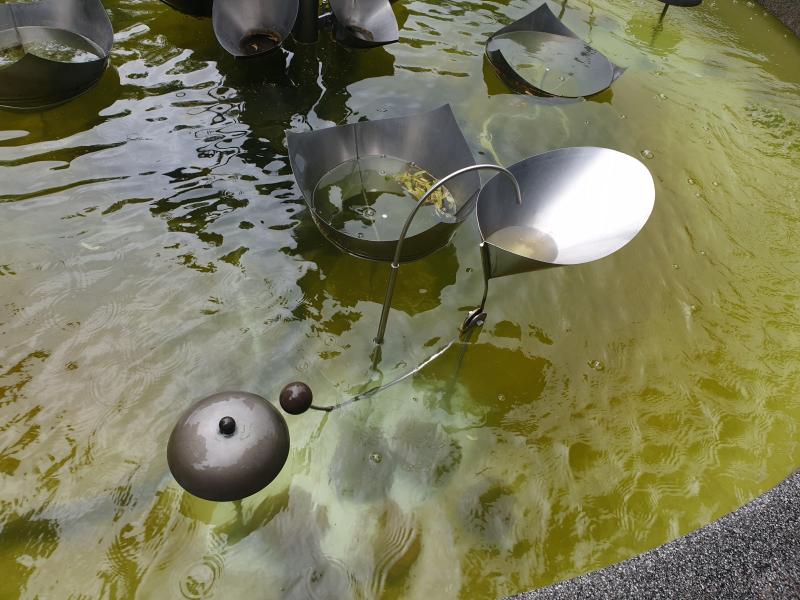Wasserbecken laden zum Verweilen ein, um zu erfahren, wie die Klangskulpturen