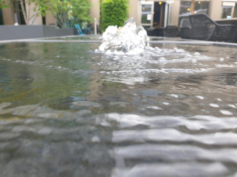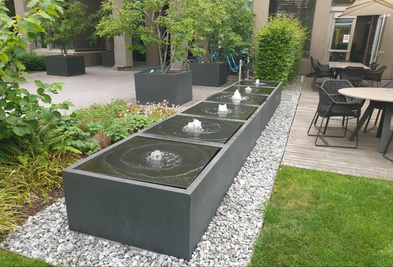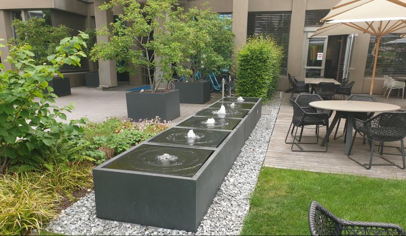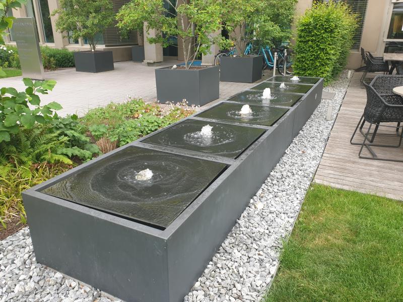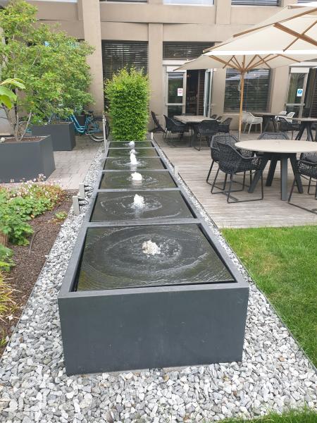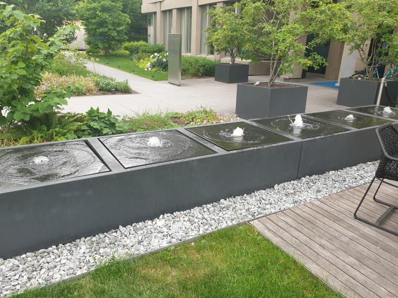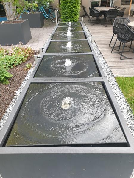 Brunnenanlage befindet sich im Garten des "Motel One" in der