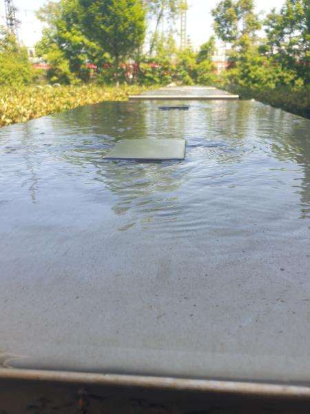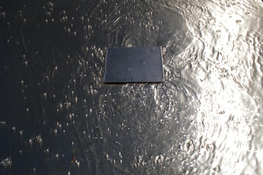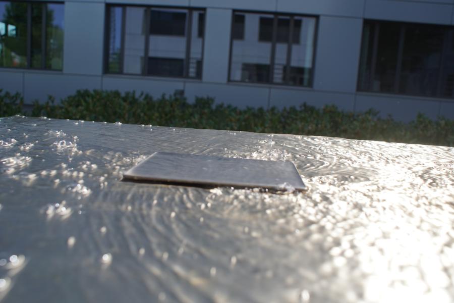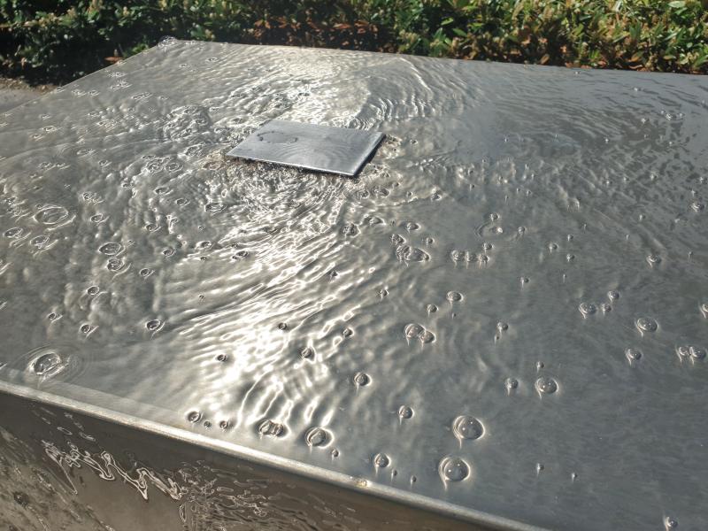 glatt geschnittene Quader läuft sanft das Wasser herab. Hier handelt