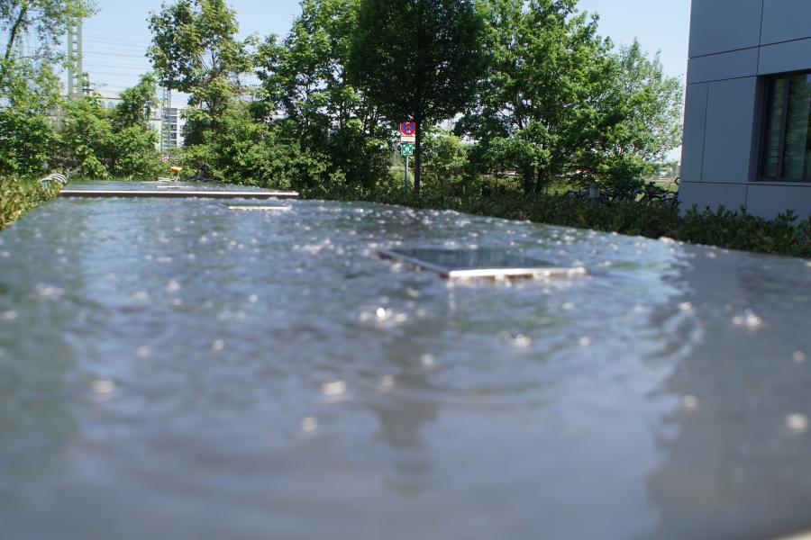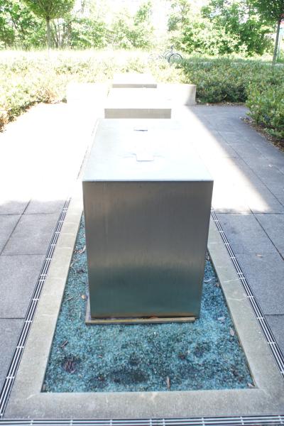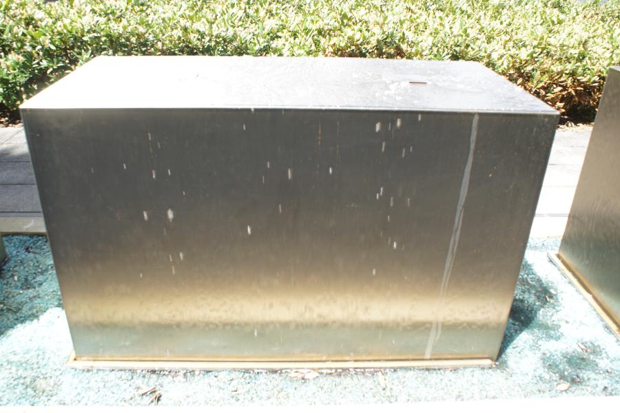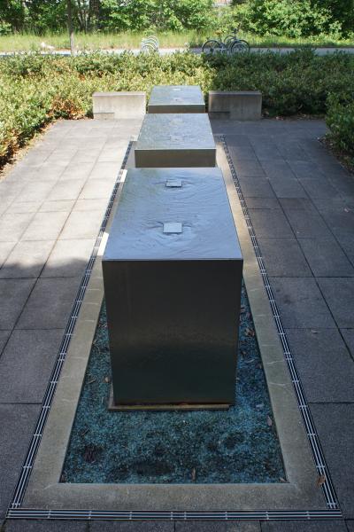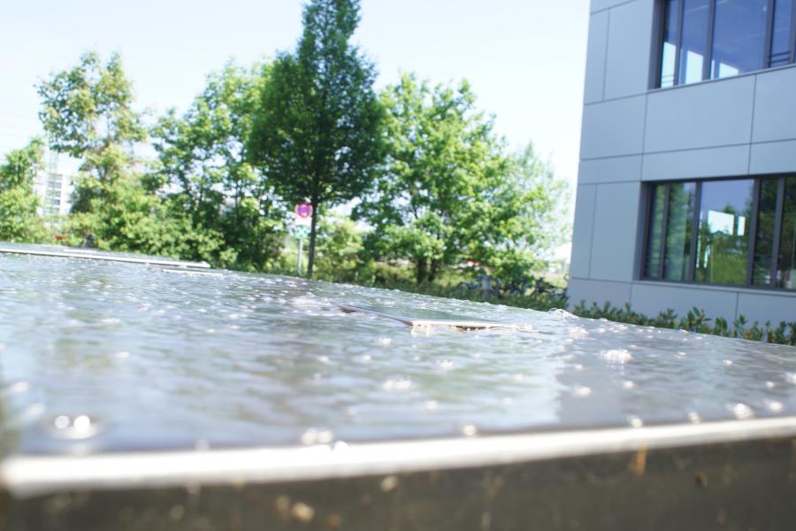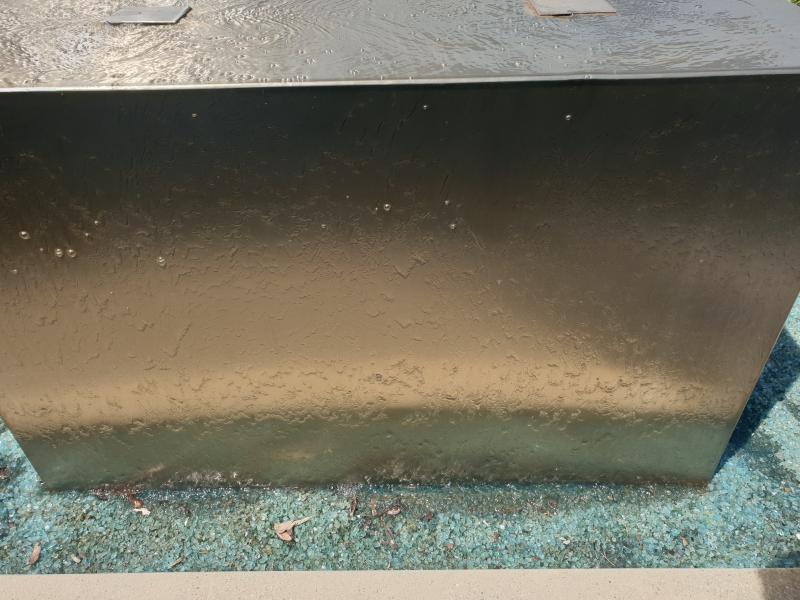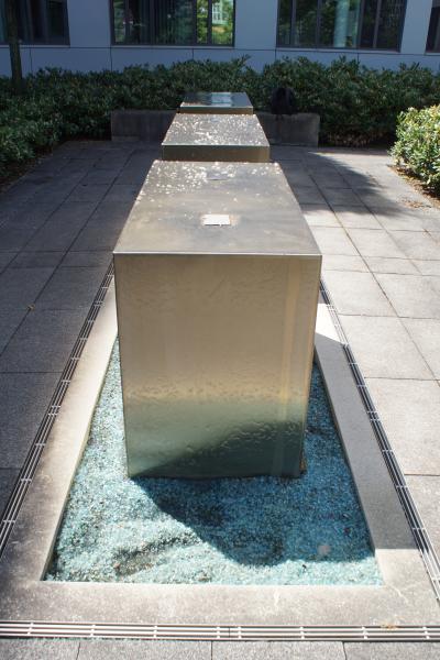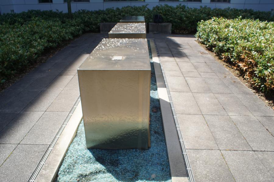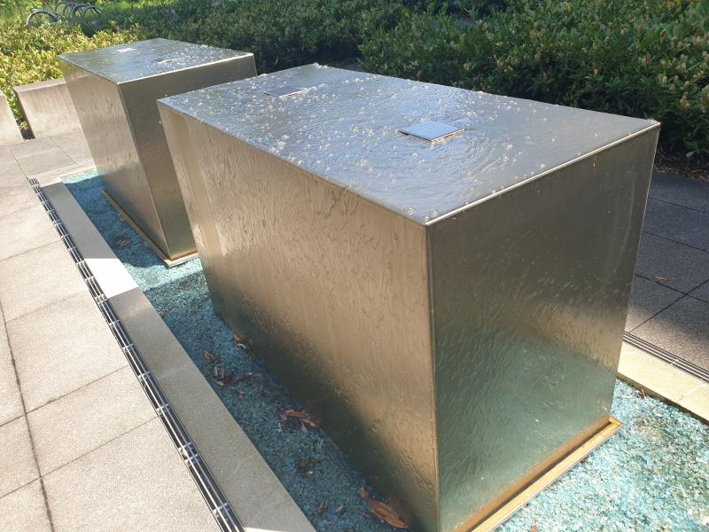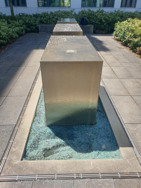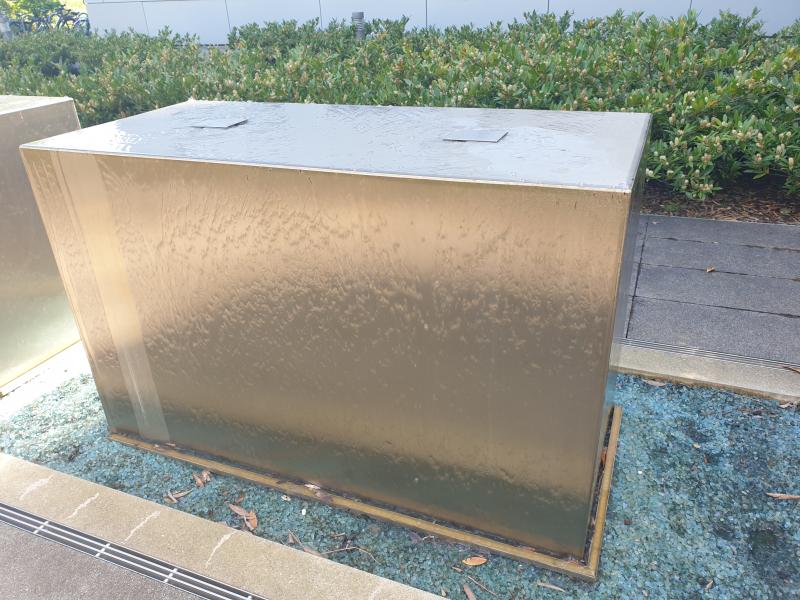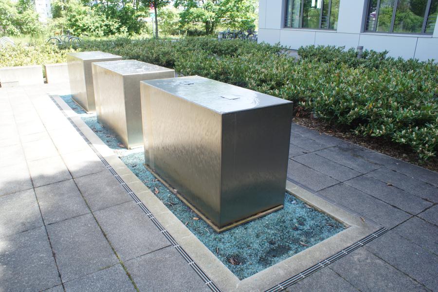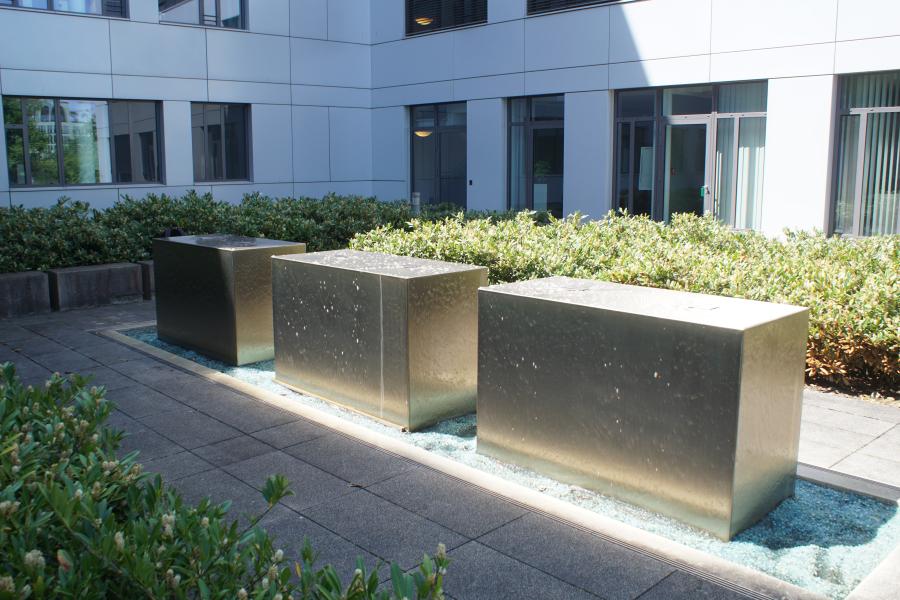 Brunnenanlage befindet sich auf der Rückseite eines Geschäftsgebäudes