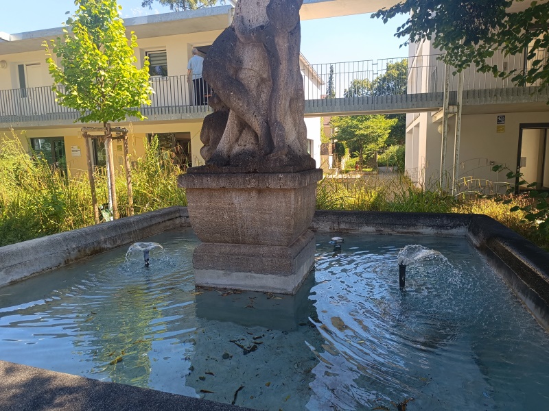 um einen städtischen Brunnen. |