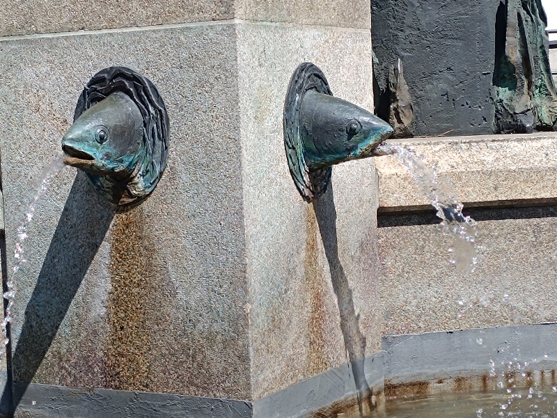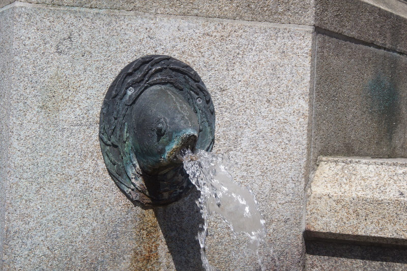 Domplatzes. Die drei auf dem Brunnen gezeigten Bistumspatrone haben alle