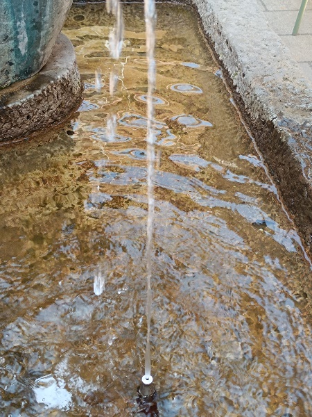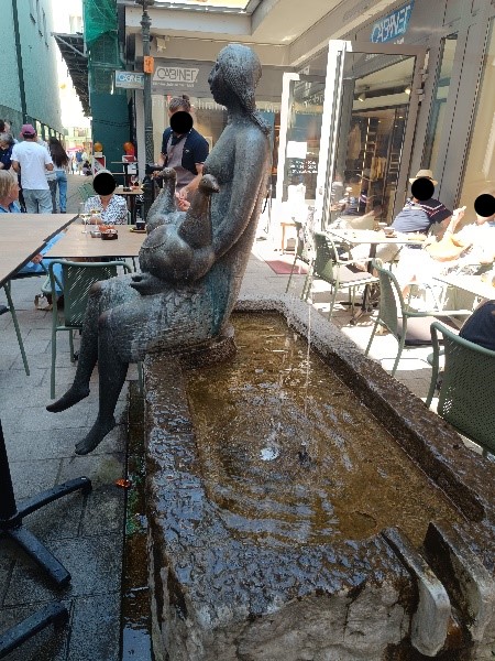 von der Familie Nill gestiftet. Das Brunnenmädchen blickt auf das
