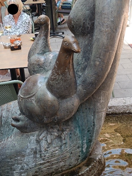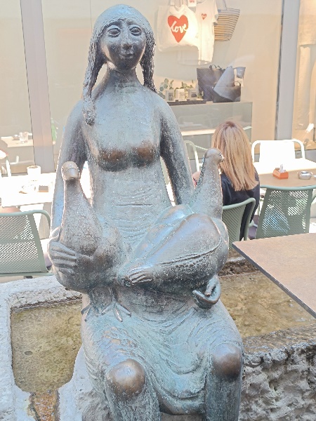 Brunnenmädchen mit den zwei dicken Gänsen auf dem Schoß