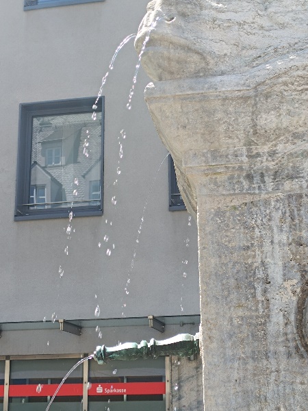 sprudelt aus vier Fischen und aus vier Kupferröhren. |